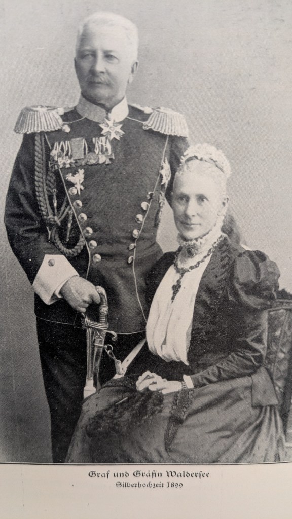 Nachbemerkung: Wenn man im Internet ein wenig forscht, findet man auch negative Berichte über den Grafen und die Gräfin Waldersee. Das hat mich etwas irritiert. Daraufhin habe ich online die Tagebücher ihres Mannes gelesen. Aufgrund des Bildes, das ich durch das Lesen der Bücher bekommen habe, bin ich zu dem Schluss gekommen, dass bei diesen negativen Berichten auch viel Verleumdung mit im Spiel ist. Trotzdem muss ich sagen, dass ich aus heutiger Perspektive nicht alle Gedankengänge des Grafen Waldersee nachvollziehen kann, gerade was seine militärischen Ideen betrifft. Es wird wohl der Zeit und dem Umfeld geschuldet sein, worin er lebte. In seinen Tagebüchern kommt ab und zu zum Ausdruck, dass er nicht den gleichen Glaubensstand hatte wie seine Frau, die sehr um sein Seelenheil besorgt war und versuchte, ihn gut zu beeinflussen. Immer wieder wagte er dann doch einen neuen Aufbruch im Glauben und laut dem Buch „Von Klarheit zu Klarheit“ konnte er zuletzt in Frieden heimgehen.